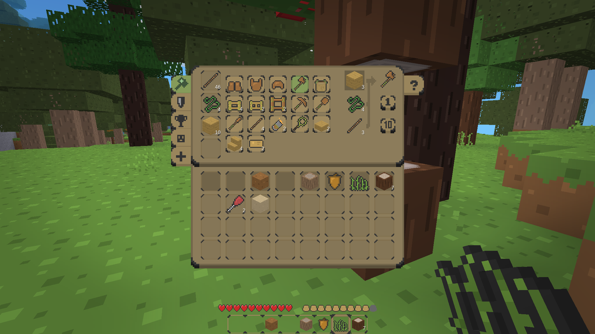 Every block in this game is breakable with the right tool, starting with your hand. Tree trunks can be broken by hand, but axes are faster. Pickaxes break stone, better pickaxes mine more valuable ores. Use your new blocks for crafting or build a nice cozy home with them. The choice is yours! The technology tree is rather low tech so the progress is rather slow-paced.